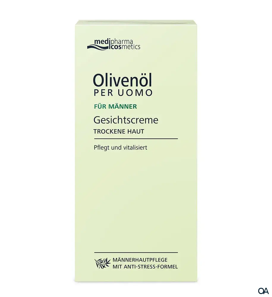 Die medipharma cosmetics Olivenöl Per Uomo Gesichtscreme pflegt und vitalisiert trockene, empfindliche Männerhaut. Männergesichtspflege mit Anti-Stress-Formel.