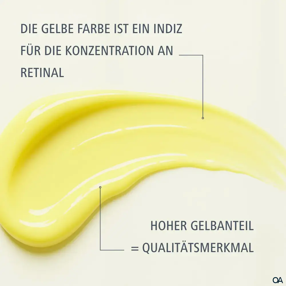 Enthält Vitamin A. Berücksichtigen Sie Ihre tägliche Aufnahme vor der Anwendung. Hautverträglichkeit dermatologisch geprüft.