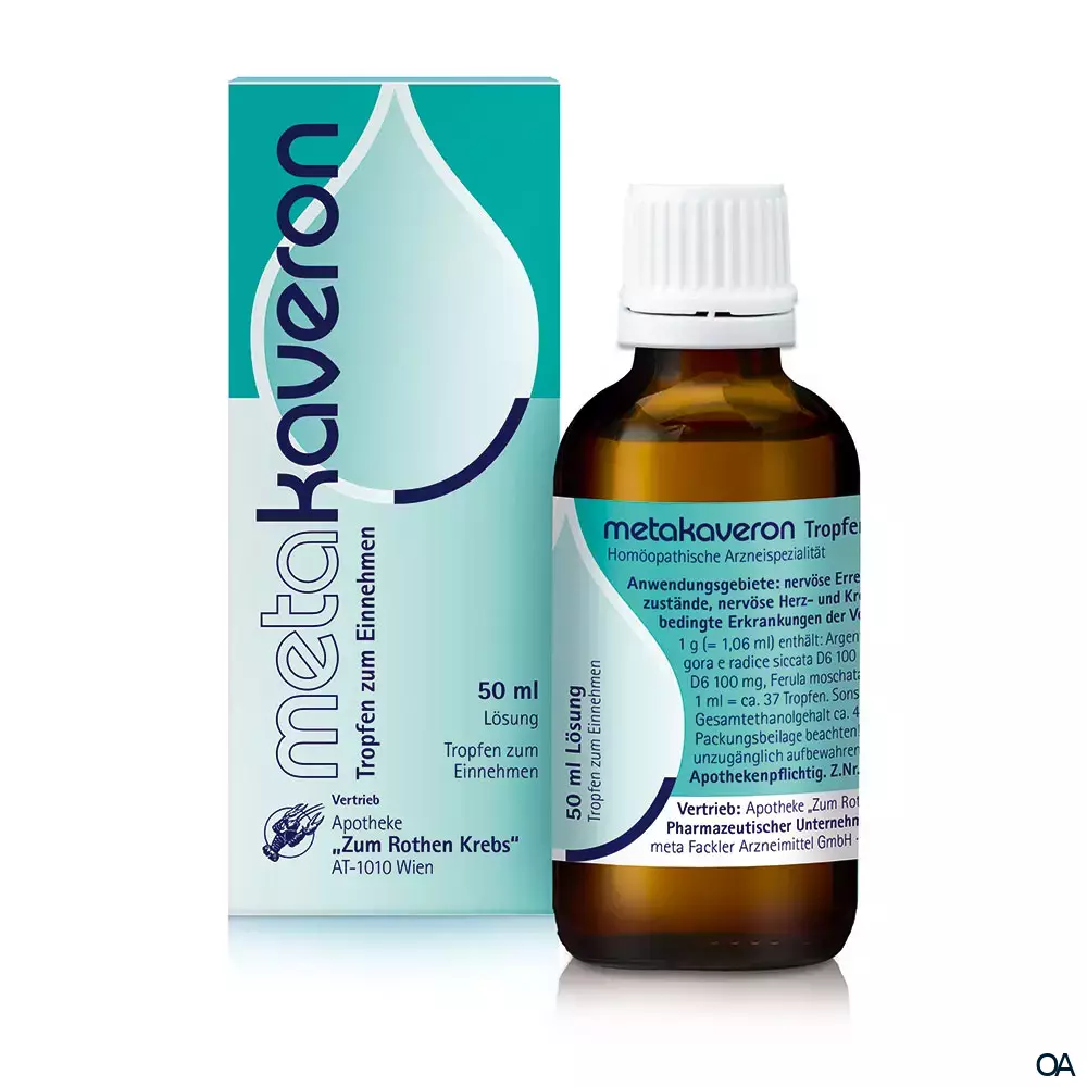 Die Metakaveron® Tropfen sind ein homöopathisches Arzneimittel zur Behandlung von nervösen Erregungs- und Erschöpfungszuständen, nervösen Herz-Kreislauf-Beschwerden und seelisch bedingten Erkrankungen der Verdauungsorgane.