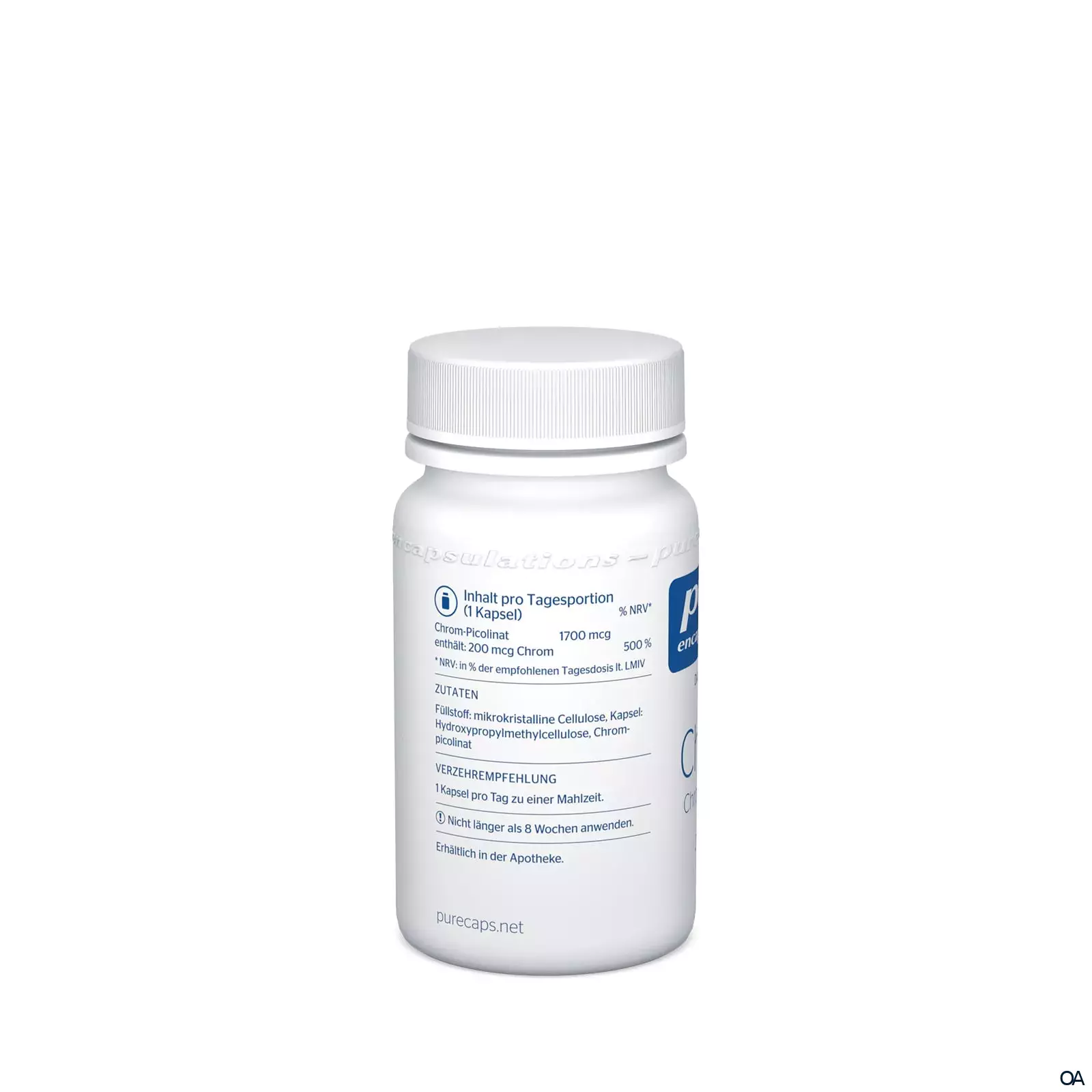 Chrom ist ein essentielles Spurenelement, dessen biologische Verwertbarkeit durch die Bindung an Picolinsäure (Chrompicolinat) gesteigert wird. Chrom ist wichtig für einen ausgeglichenen Blutzuckerspiegel und die Verwertbarkeit der Makronährstoffe (z. B. Kohlenhydrate).