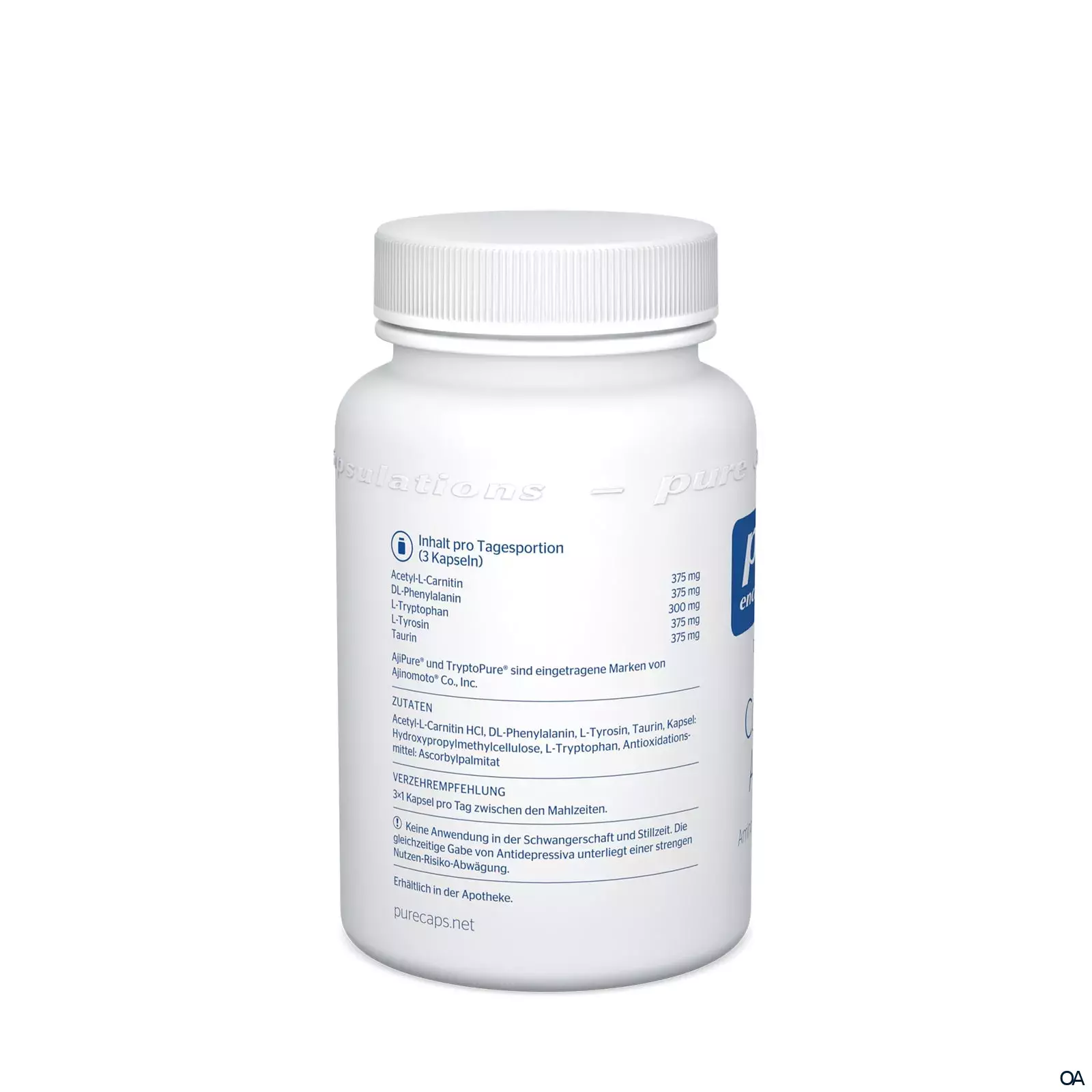 Inhalt pro Tagesportion (3 Kapseln) Acetyl-L-Carnitin 375 mg DL-Phenylalanin 375 mg L-Tryptophan 300 mg L-Tyrosin 375 mg Taurin 375 mg