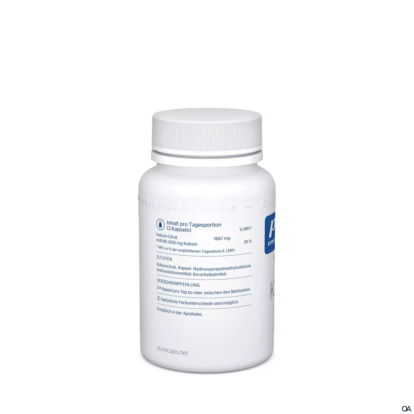 Zutaten: Kaliumcitrat, Kapsel: Hydroxypropylmethylcellulose, Antioxidationsmittel: Ascorbylpalmitat