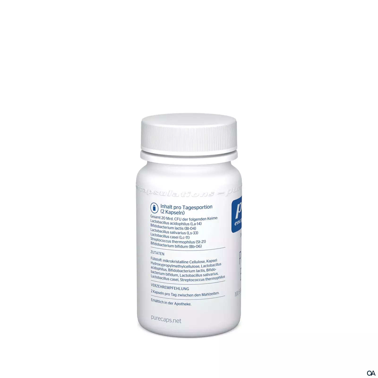 Inhalt pro Tagesportion (2 Kapseln) Gesamt 20 Mrd. CFU der folgenden Keime: Lactobacillus acidophilus (La-14) Bifidobacterium lactis (Bl-04) Lactobacillus salivarius (Ls-33) Lactobacillus casei (Lc-11) Streptococcus thermophilus (St-21) Bifidobacterium bifidum (Bb-06)