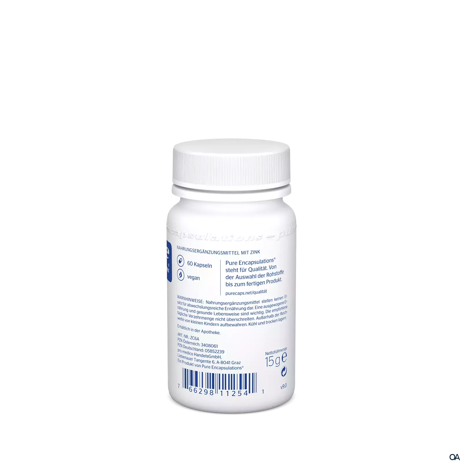 - Zutaten: Füllstoff: mikrokristalline Cellulose, Zinkcitrat, Hydroxpro- pylmethylcellulose (Kapsel), Antioxi dationsmittel: Ascorbyl palmitat.