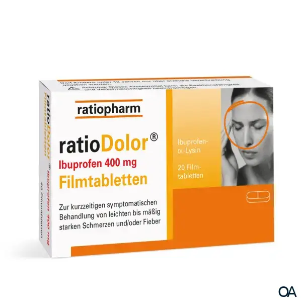 Die ratioDolor® Ibuprofen 400 mg Filmtabletten sind ein schmerzstillendes und fiebersenkendes Arzneimittel (nichtsteroidaler Entzündungshemmer, auch als nicht-steroidales Antirheumatikum bezeichnet [NSAR]).