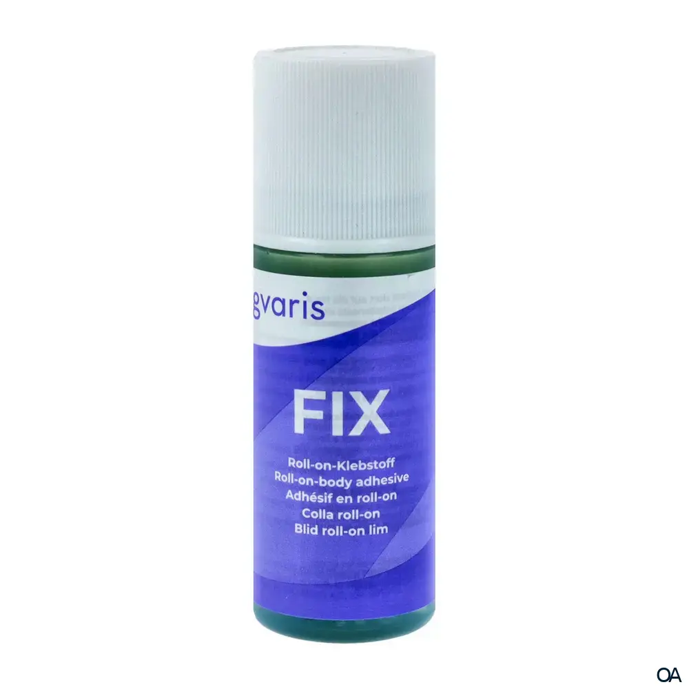 Ein Spezial-Roll-on-Klebelotion für die Befestigung medizinischer Kompressionsstrümpfe ohne Haftrand an Armen und Beinen. Er ist schonend zur Haut und macht alle Körperbewegungen mit. FIX ist mit Wasser abwaschbar und hinterlässt keine Flecken. Zusätzlich kann die Klebelotion auch zur Befestigung von orthopädischen Hilfsmitteln, Sportbekleidung oder sonstigen Textilien am Körper verwendet werden.