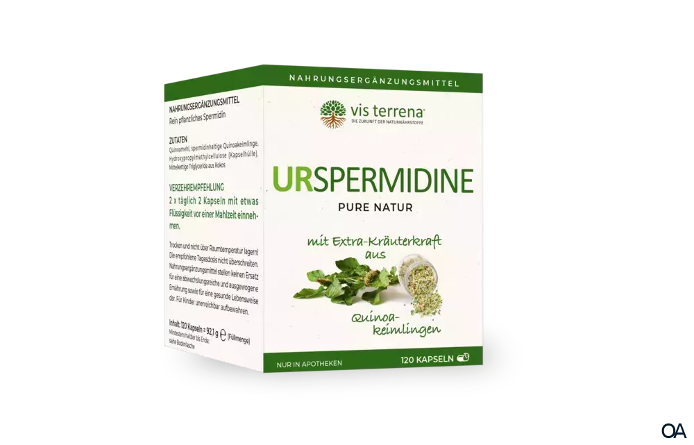 Die vis terrena® UR SPERMIDINE Kapseln sind ein Nahrungsergänzungsmittel mit rein pflanzlichen Spermidin und Spermin aus Quinoa-Keimlingen und rein pflanzlichen B-Vitaminen.